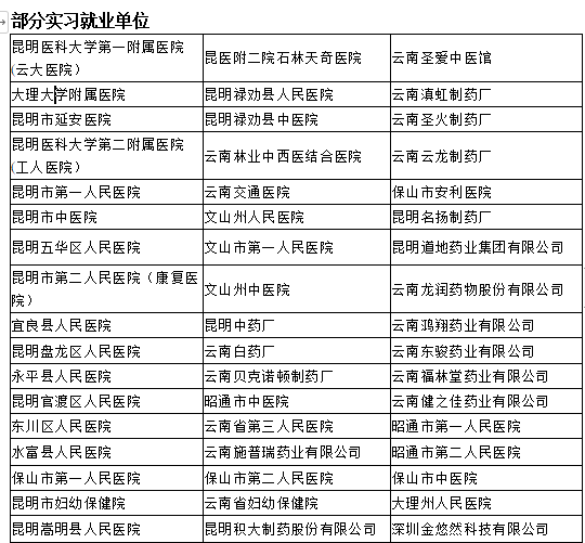 办学二十八年来,在云南省委、省政府及省教育工委、省教育厅的坚强领导下,学校始终坚持医药卫生专业面向基层医疗卫生机构,为基层培养了近十万名“下得去、用得上、留得住”的医药卫生人才。学校特别注重培养敬业精神和责任意识,特别注重提高学生的实践能力、创造能力、就业能力和创业能力,提倡高岗就业、高薪就业、国外就业、阳光创业,就业率达98%以上,连续6年获云南省教育厅就业目标责任考核二等奖。