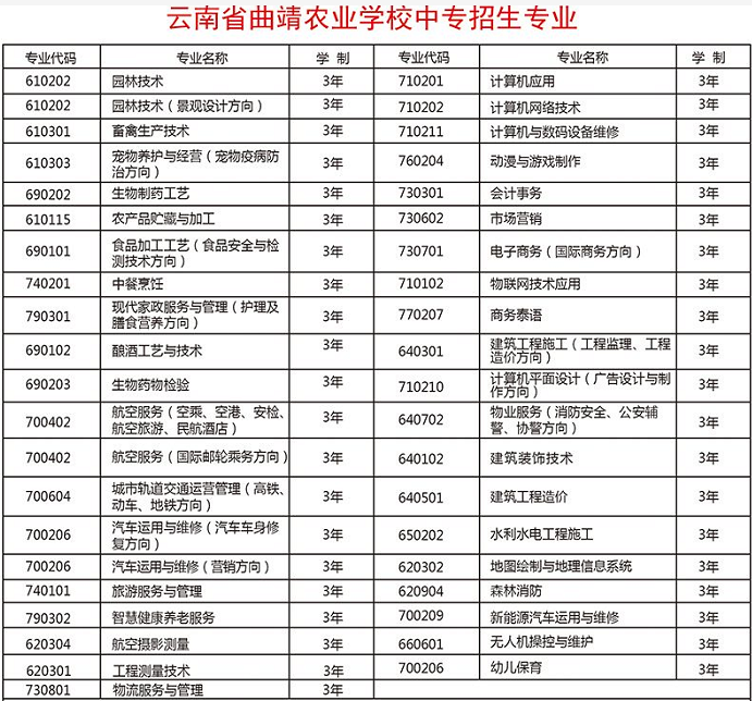 曲靖农业学校(三年制普通中专)招生专业简介