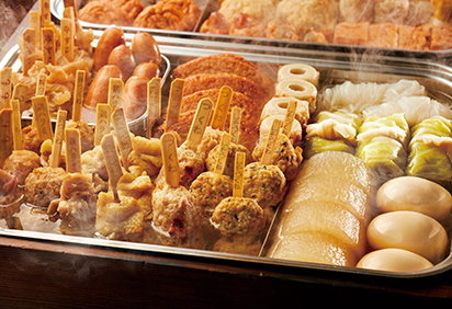 关东煮这一美食是否好吃的关键,而其主要全都在那口汤中!其实就日式关东煮的汤底是不同于我们中式高汤那样的肉香浓郁。而其主要选用到的是昆布以及和木鱼花这样的风干的海鲜,将其焖煮而出,口味也更偏清鲜。关东煮其中的食材通常都包括了鸡蛋、萝卜、土豆、海带、蒟蒻、鱼丸、竹轮等等食材。