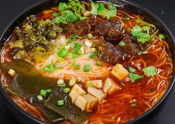 食材明细:米粉、葱、八角、草果、小茴香、白扣、胡椒面、花椒、姜、鸡精、味精、豆瓣酱、高汤、猪肉、竹漏