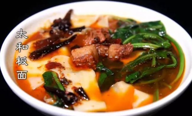 安徽板面是安徽的汉族特色小吃,在全国很多省市(特别是东北)均有安徽板面的面馆。所谓板面就是面和普通的面不一样,不是一根一根的,是条状的,面的宽度在1到2厘米。面身有的是用机器压的,也有的是用人工用一根擀面的棍子在木板上压的。