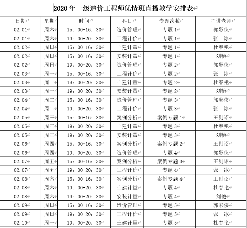 深圳2020年一级造价工程师优情班直播教学安排表学费有优惠吗?