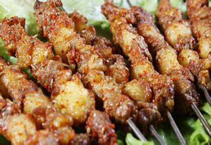 烤羊肉串、烤羊腿、烤板筋、肉筋、烤腰子、排骨、烤鸡心、烤鸡胗、烤鸡爪、烤鸡翅、烤大虾、烤蚕蛹、烤小黄花鱼、烤鱿鱼、烤馒头片、烤扇贝、烤生蚝、烤蔬菜和酱料的制作及辅料的制作